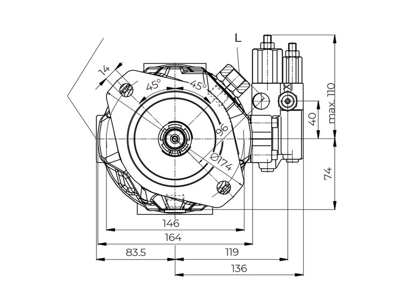 The pump has been tested to operate safely at a nominal pressure of 280 bar and a maximum pressure of 350 bar. Thanks to both ISO and SAE mounting standards, it is directly compatible with all machinery in the global market, and its modular structure allows it to be combined with additional pumps (thru-drive).